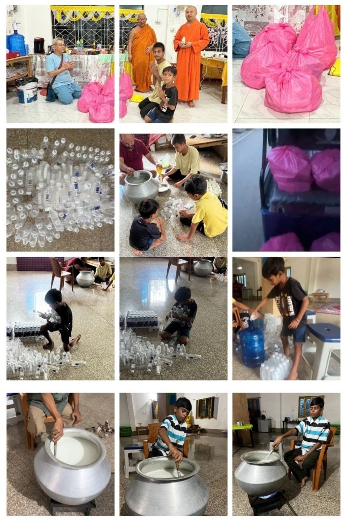 “Lassi-making by the youth members of Maha Guru Bhumi on 17 September 2025, for distribution at the ceremony in honor of the Most Venerable at Thai Magadh Temple.”